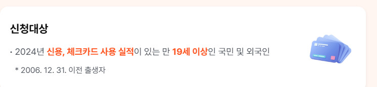 가장 중요한 조건은 2024년 카드 사용 실적입니다. 작년에 카드를 전혀 사용하지 않았다면 비교 기준이 없기 때문에 상생페이백 대상이 될 수 없습니다. 또한 외국인의 경우에도 국내 카드사에서 발급받은 카드로 2024년 실적이 있어야 상생페이백 홈페이지에서 신청이 가능합니다.
