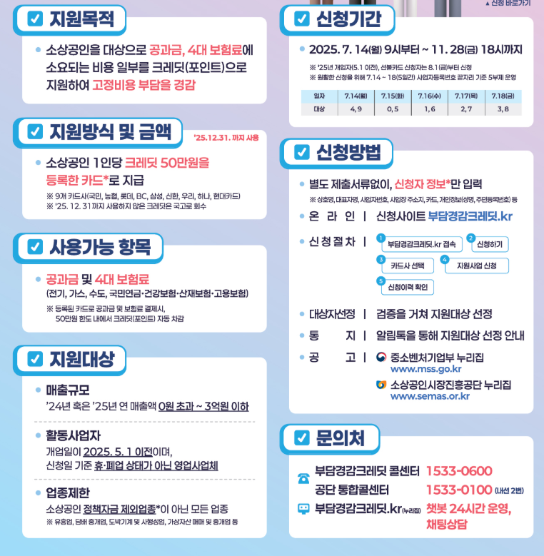 신청 방법 부담경감크레딧.kr 또는 소상공인24 온라인 신청